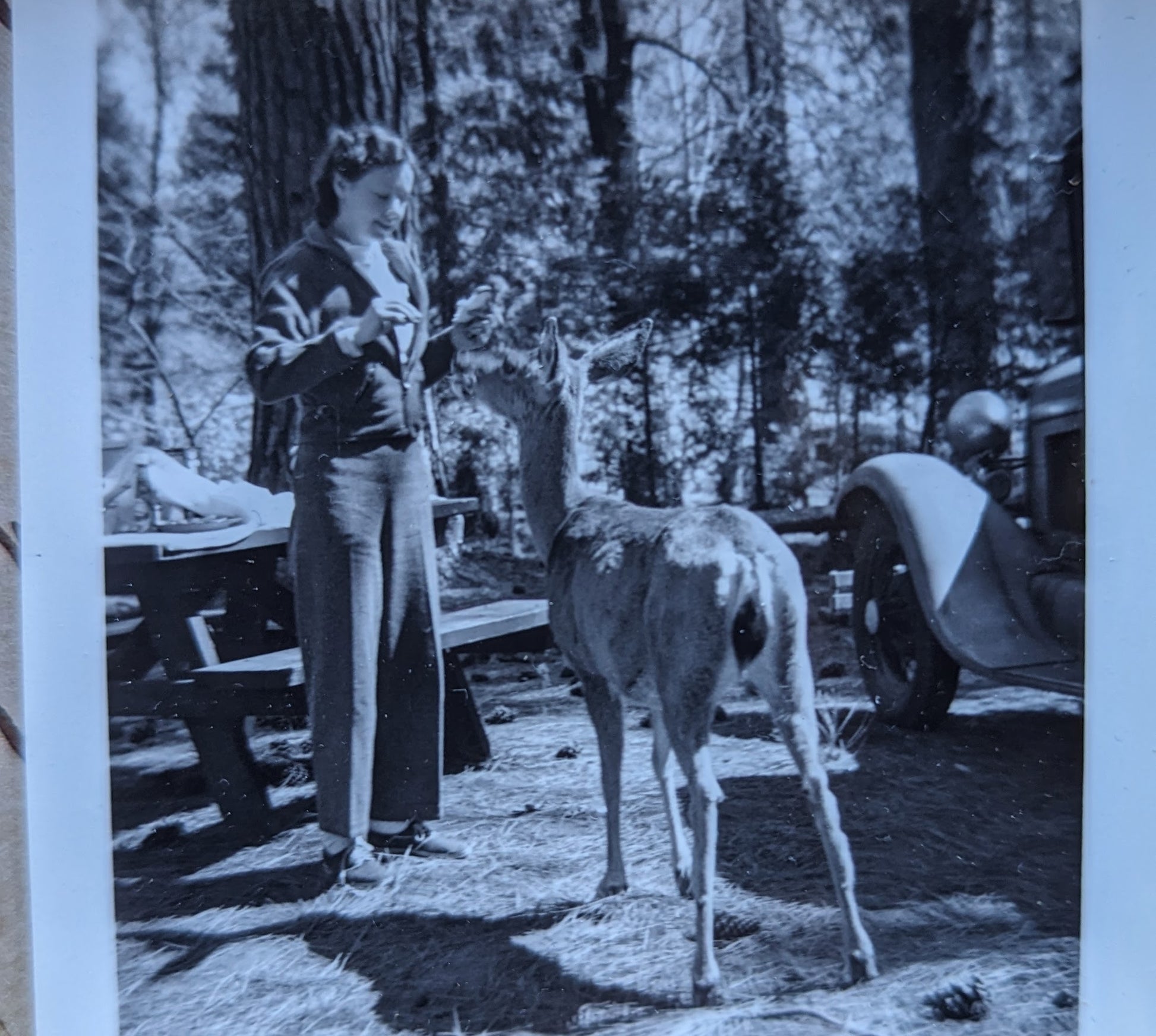 Photo - Feeding the Deer - Old Photograph in Reclaimed Barnwood Frame