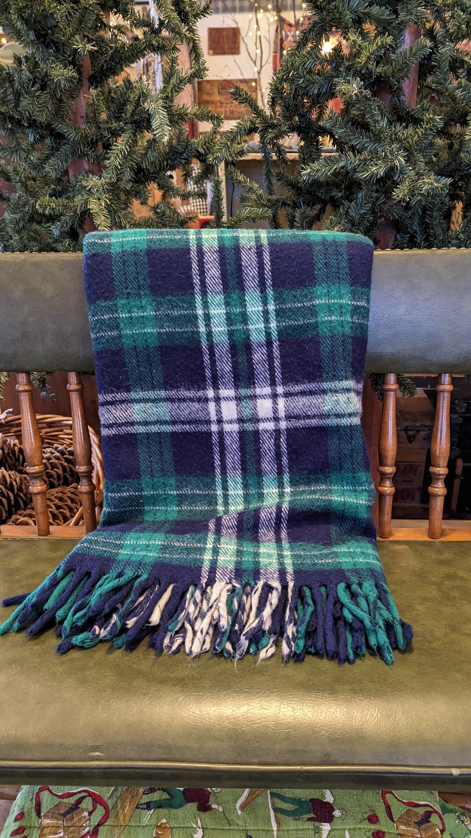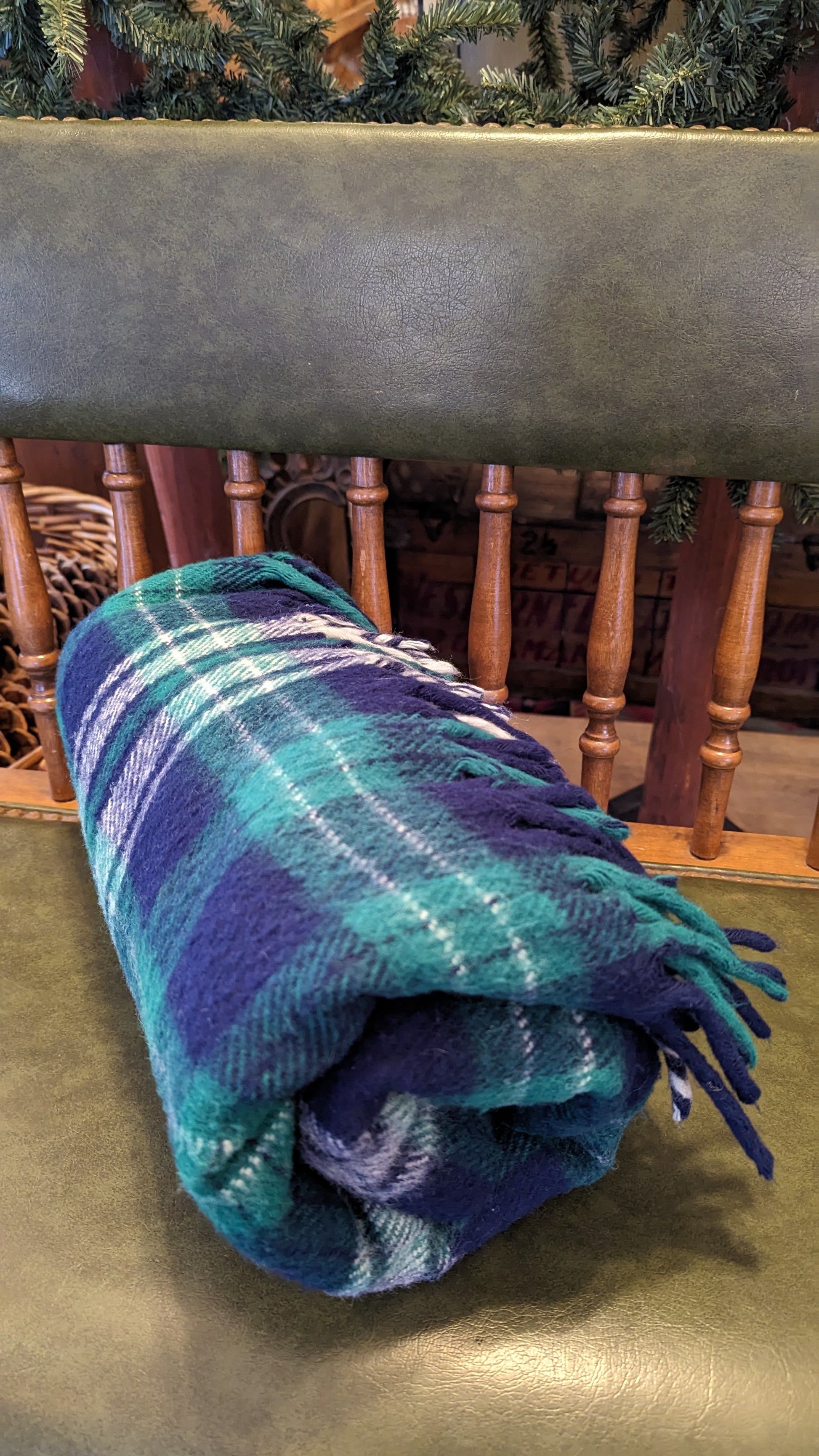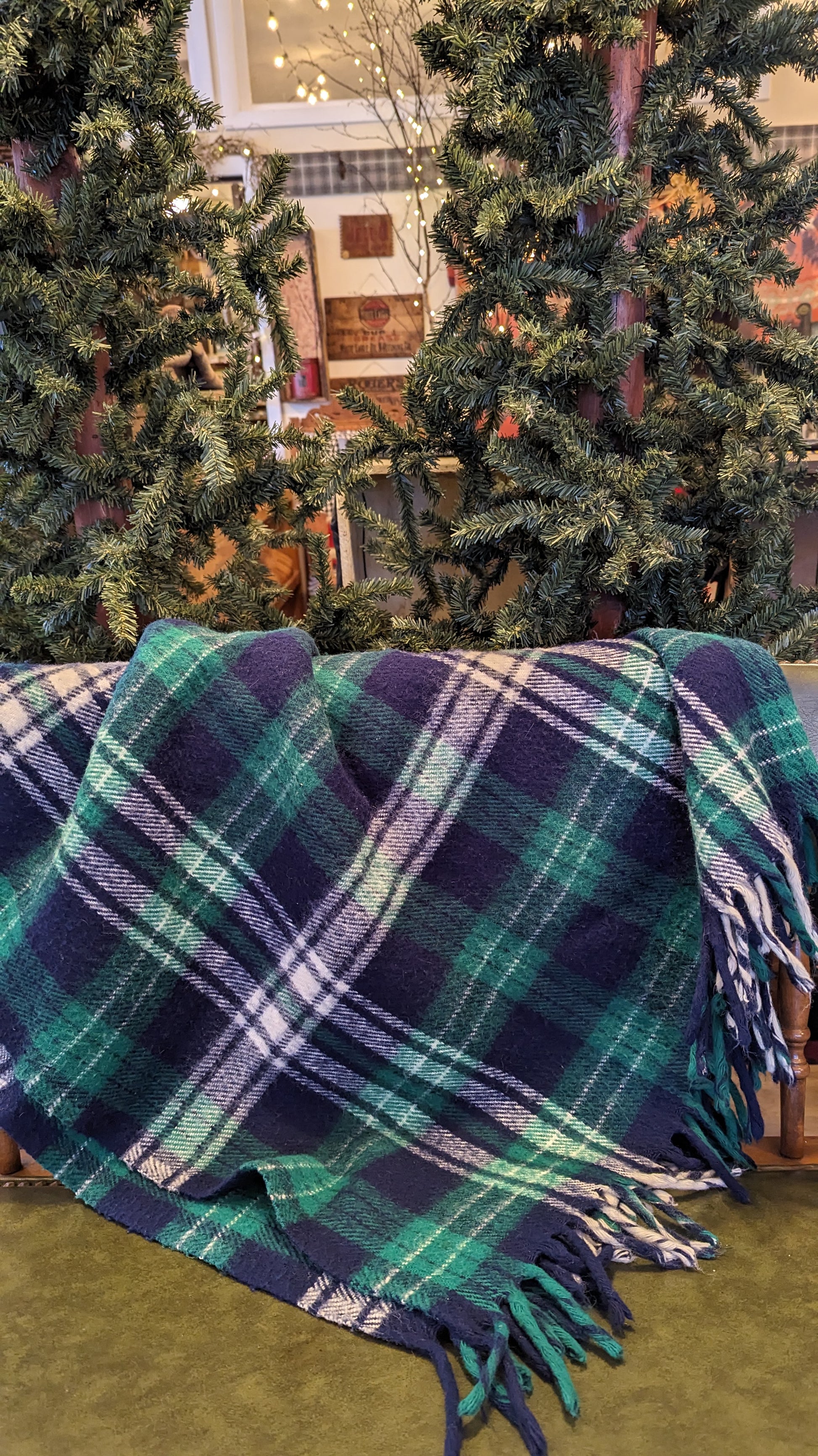 Vintage Camp Blanket, Stadium Blanket, Green, Blue, and White Plaid